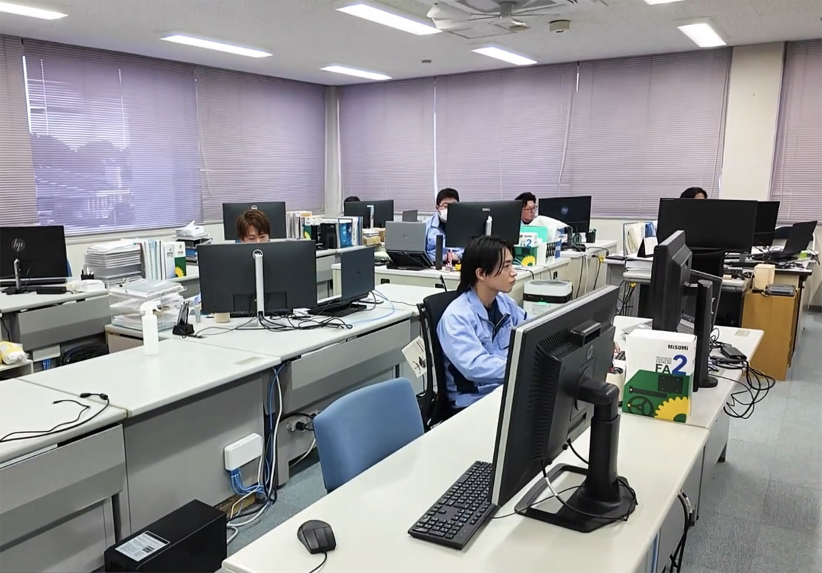 Company Tour 会社見学 HOME 会議室 他の部署を見る 動画を見る CAD設計部 動画を見る NC部 動画を見る 製造1部 デザインモデル 成形型 動画を見る 製造2部 設備機械・ロボット組立エリア 動画を見る 鉄工場 動画を見る 総務部・営業部・資材購買課 動画を見る 食堂